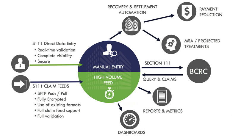 Our S111 Management Dashboard gives you full visibility into your claims from a global level all the way down to the details of a specific claim. You can manage the accuracy of data, such as ICD 10 codes or ORM termination, to avoid unnecessary conditional payments, MSA exposure or CMS Civil Monetary Penalties.