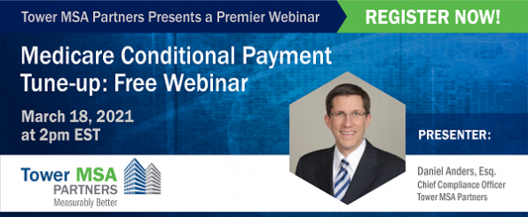 Join Dan Anders, Tower’s Chief Compliance Officer, on Thursday, March 18 at 2:00 PM ET, for a Medicare conditional payment “tune-up.” The free webinar will focus on: